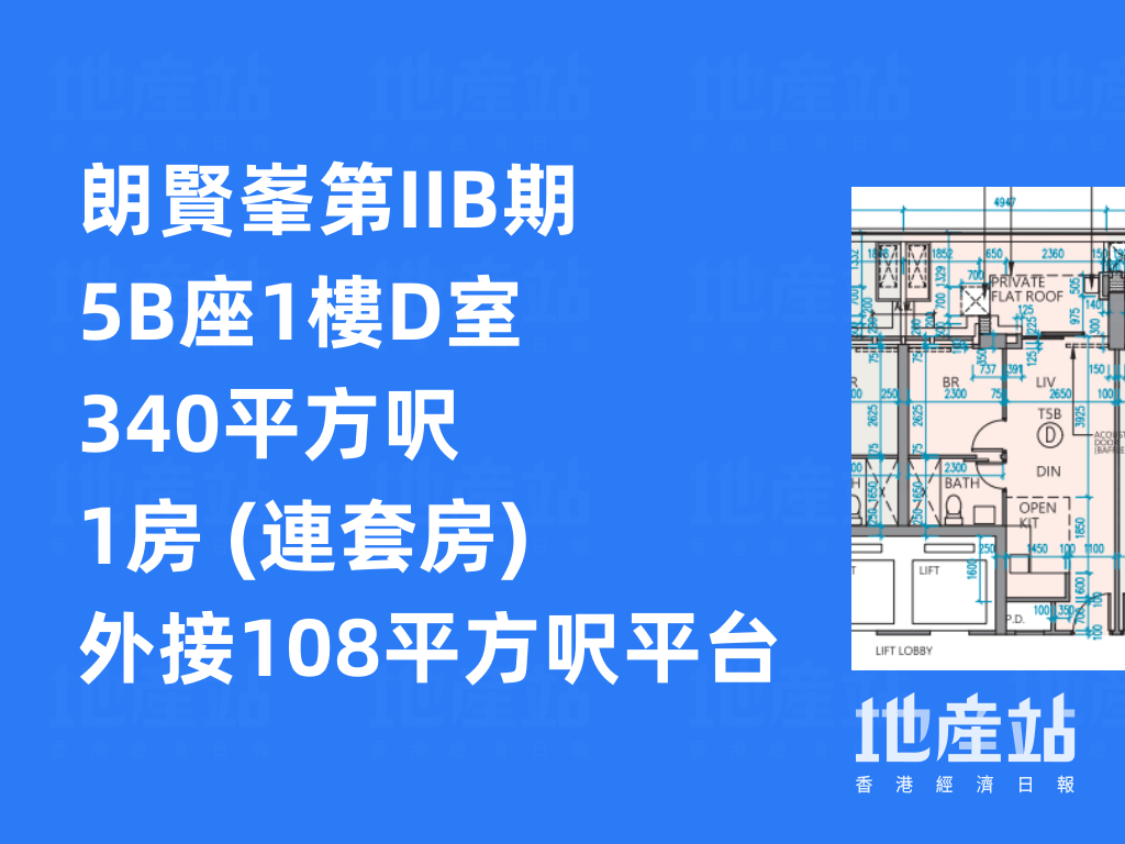 至於第IIB期最細單位為第5B座1樓D及E室,實用面積同340平方呎,1房間隔,設108平方呎平台;至於第5A座28樓A室,實用面積1,304平方呎,4房雙套間隔,連941平方呎天台。