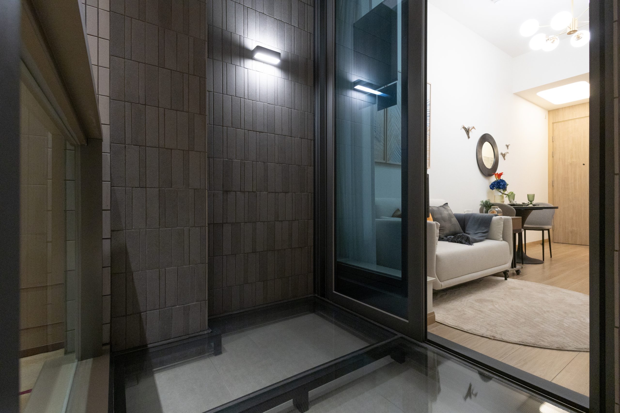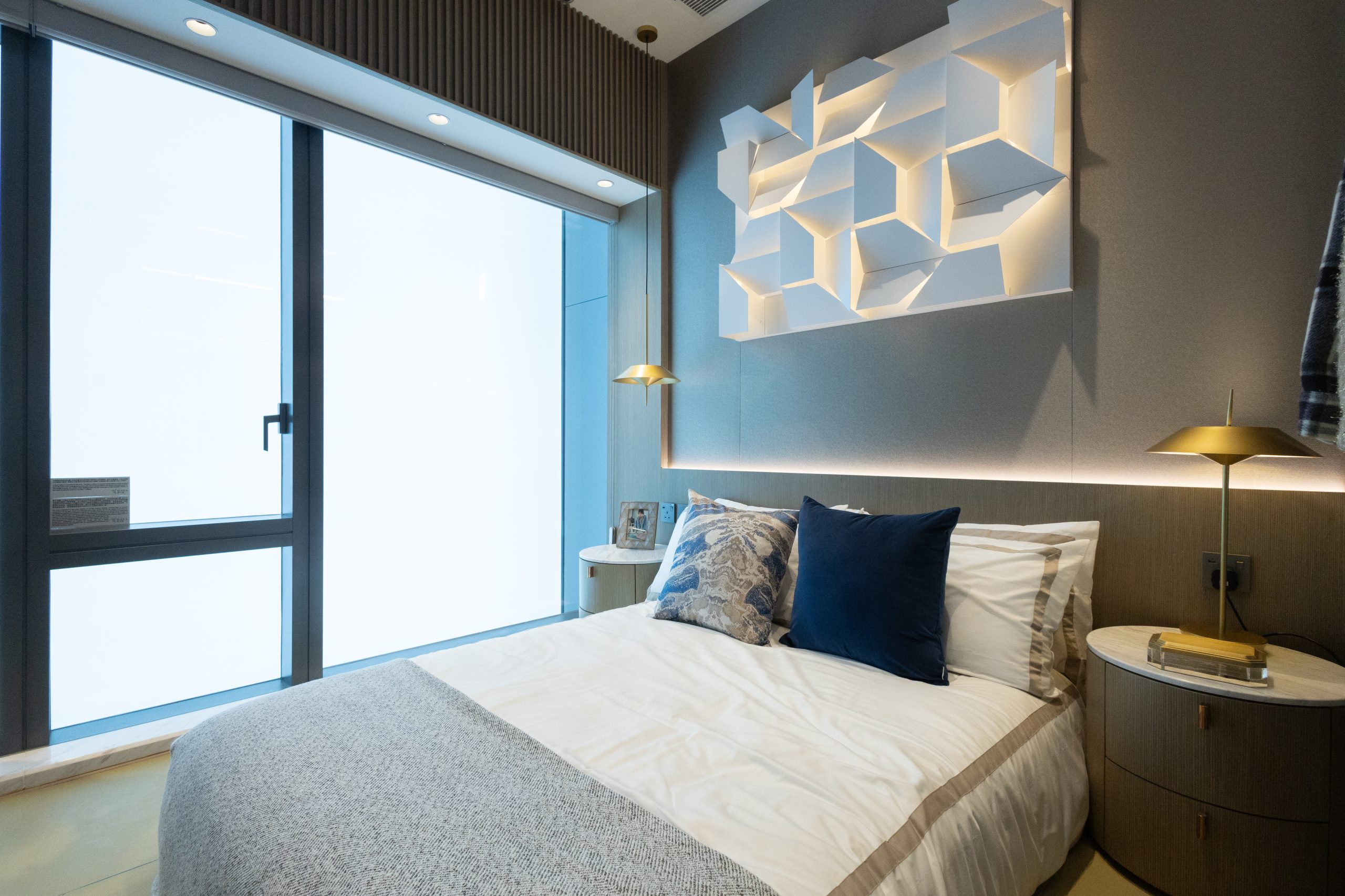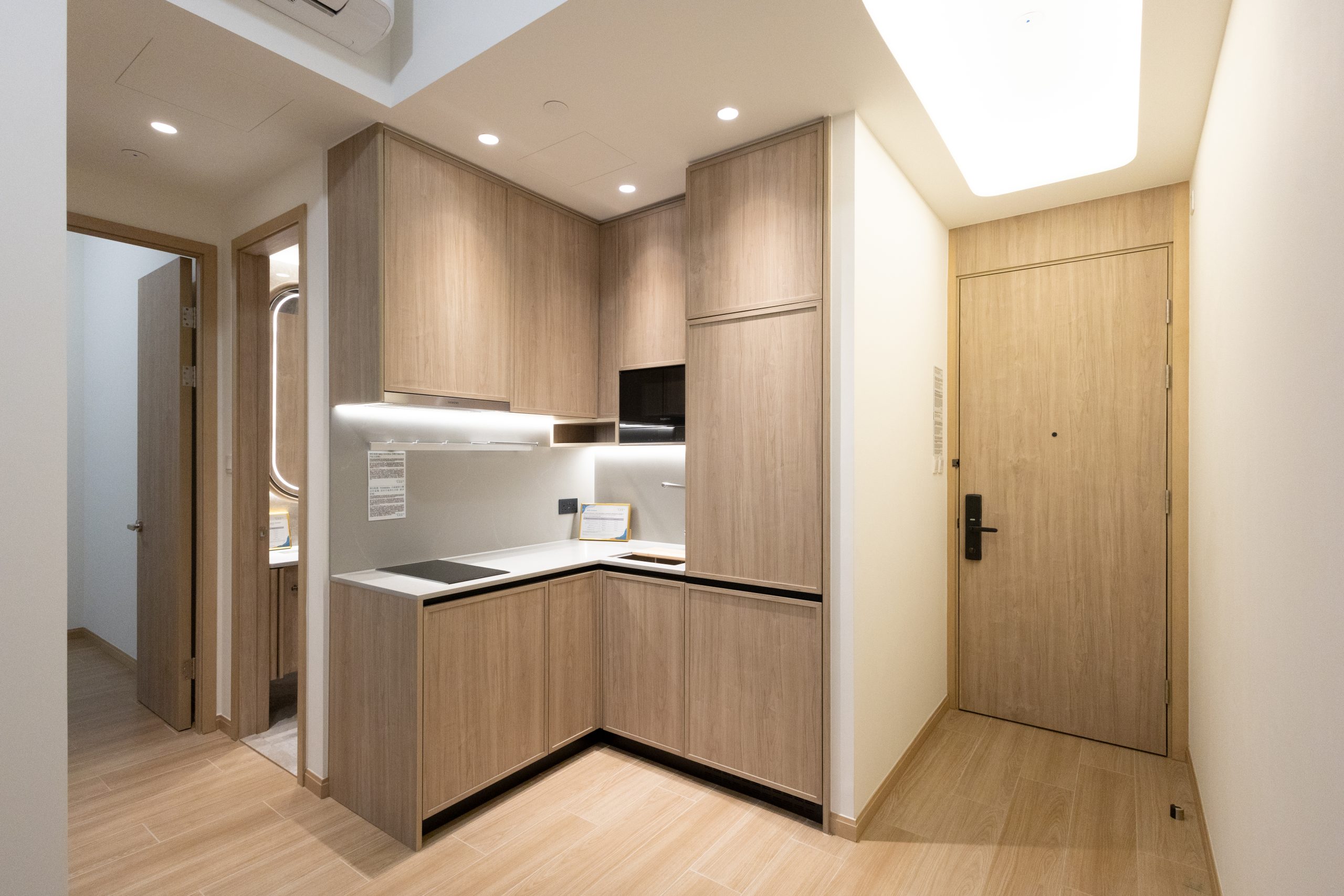 發展商同樣備有以第1A座18樓H室為藍本搭建的無改動示範單位,開則方正實用,客飯廳長約5.4米,闊約2.4米,主人睡房長約3米,闊約 2.1米,讓戶主可靈活地擺放不同家具,結合單位的特高樓底,提升室內的空間感,並進一步進行室內設計。