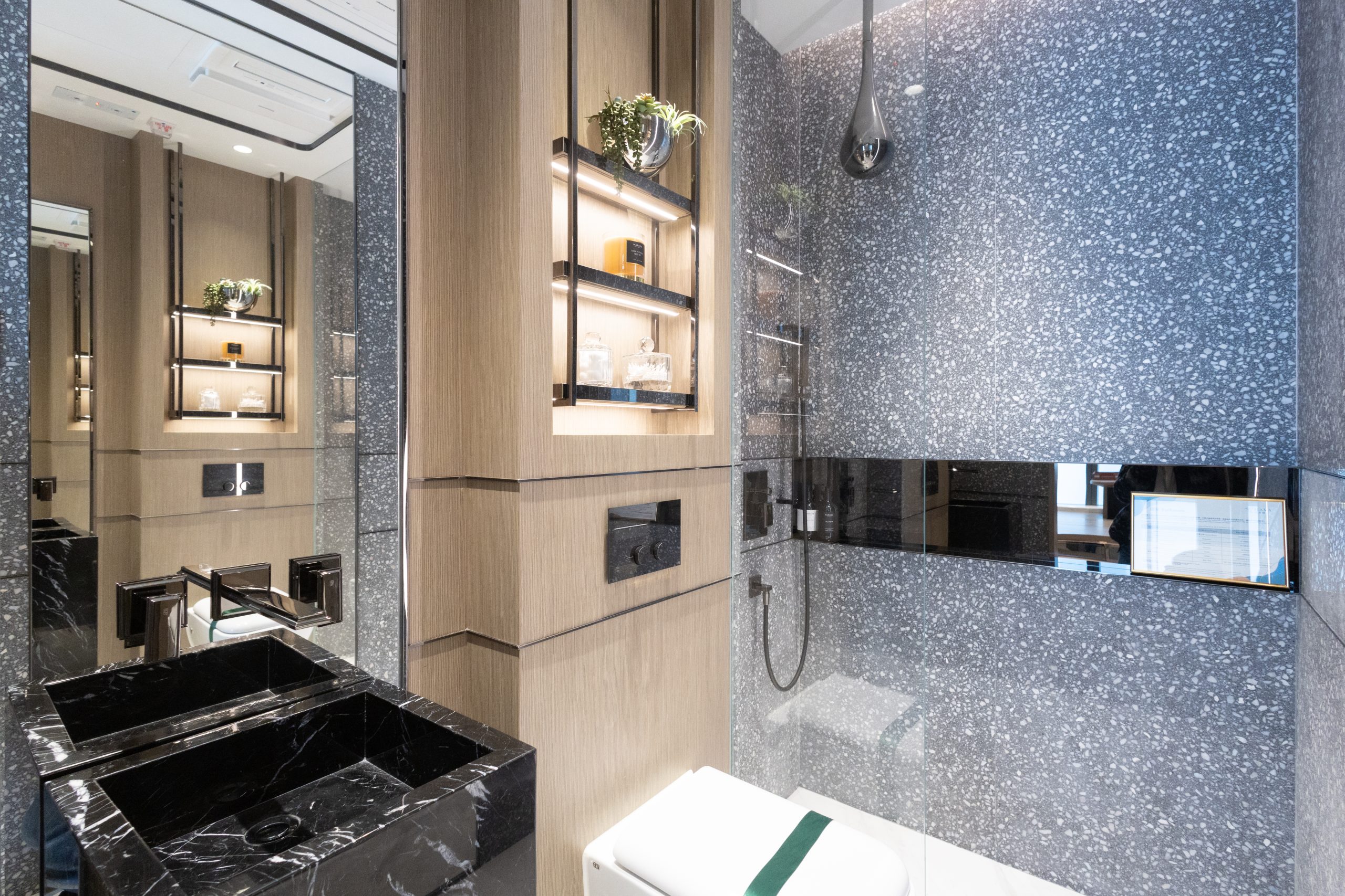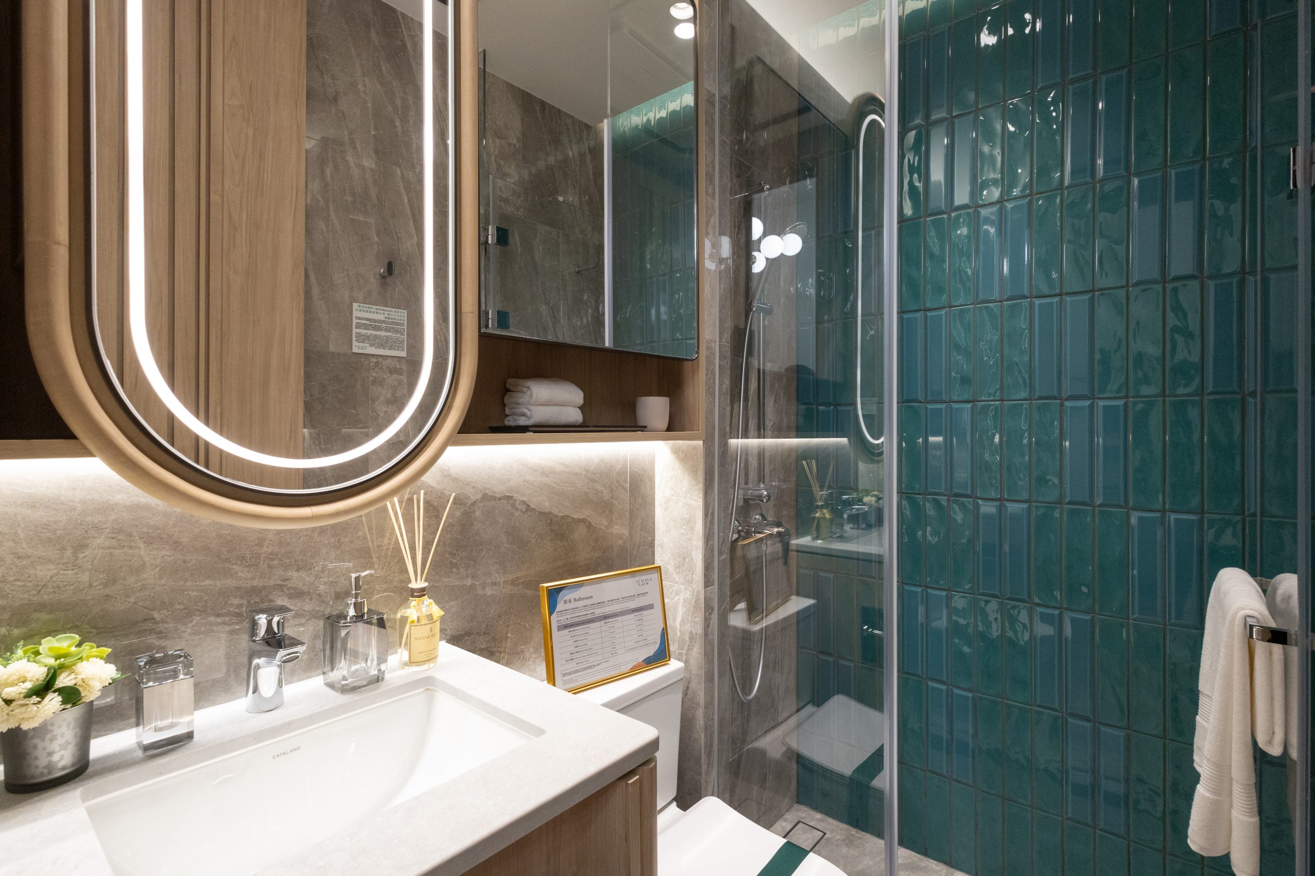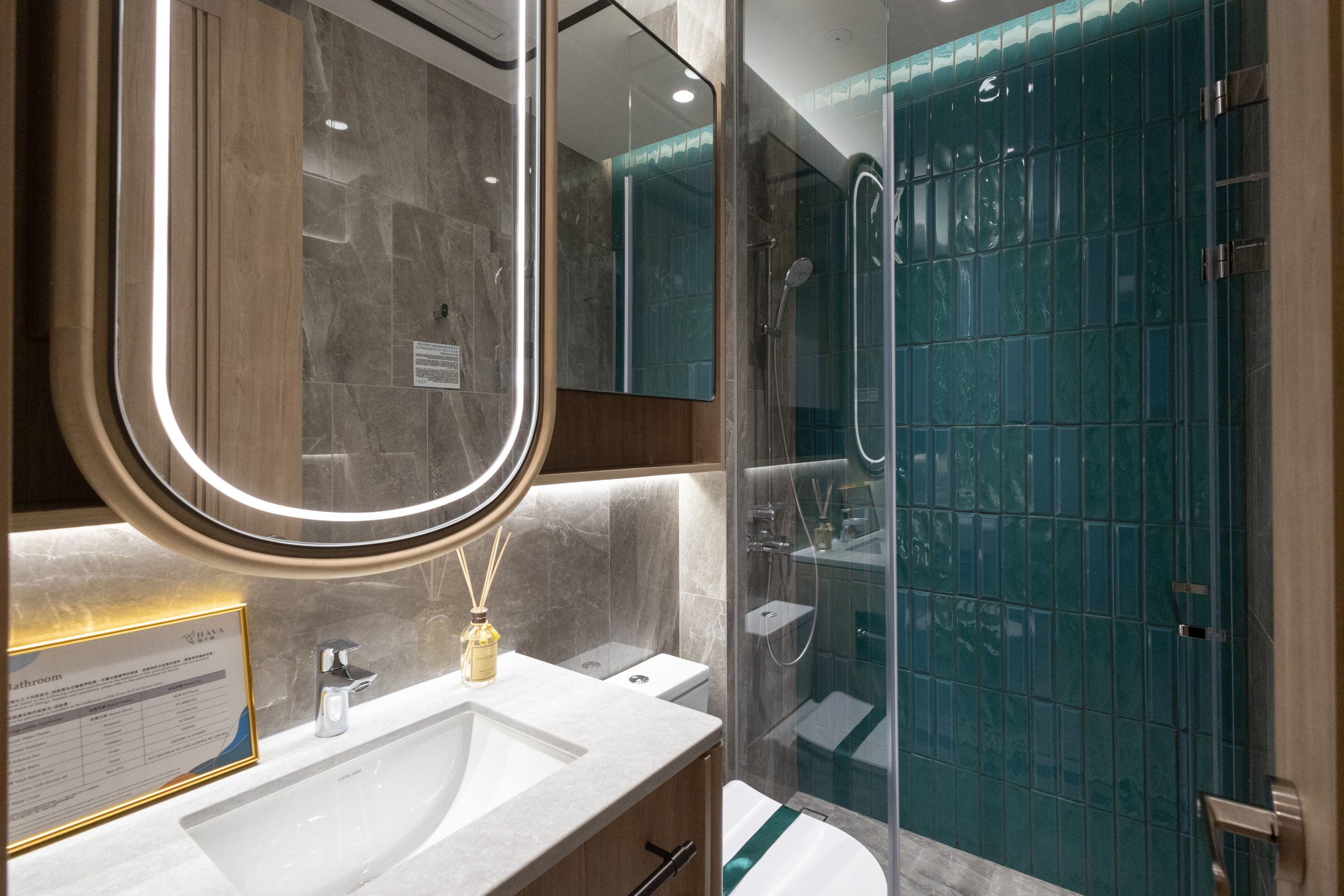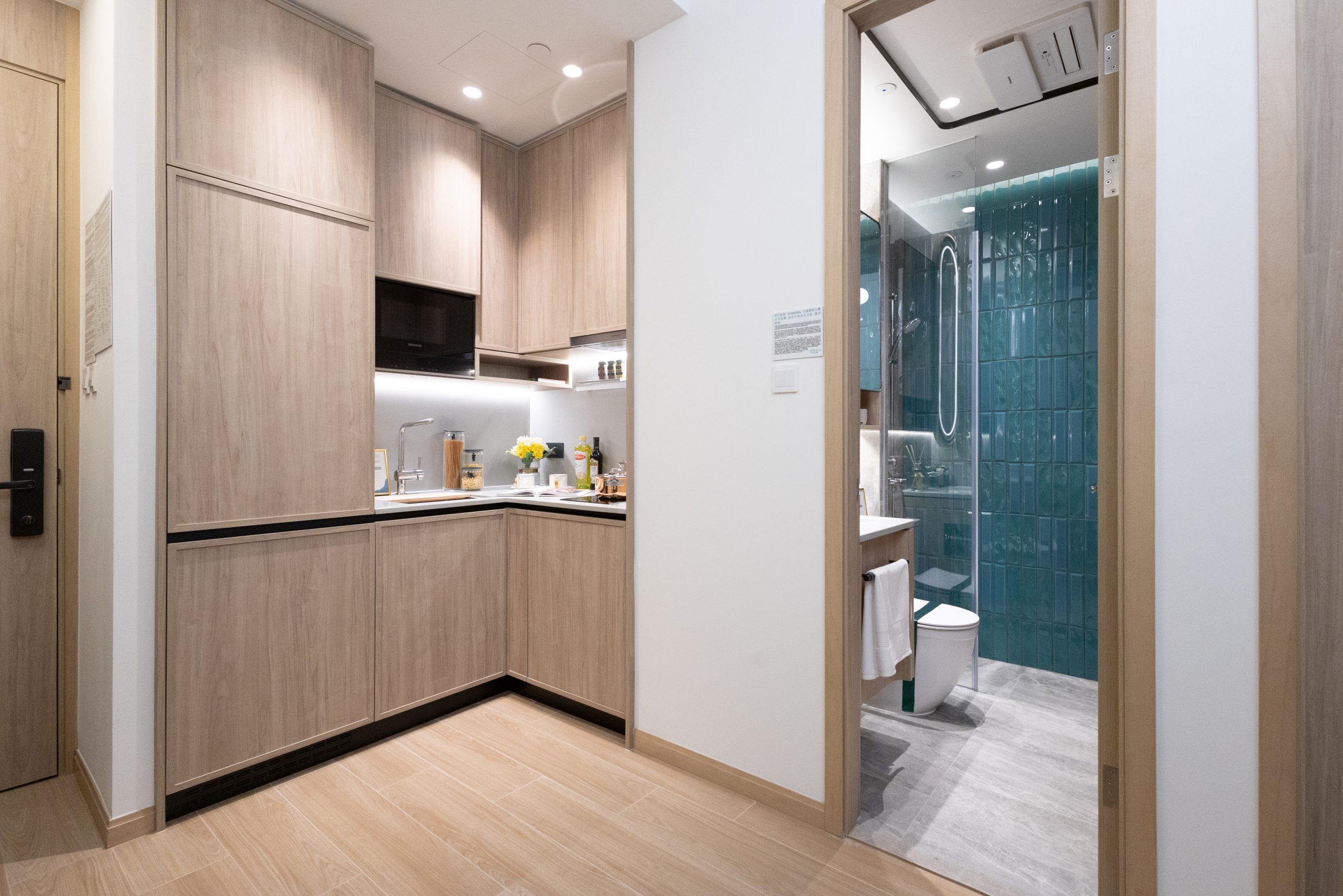 發展商同樣備有以第1A座18樓H室為藍本搭建的無改動示範單位,開則方正實用,客飯廳長約5.4米,闊約2.4米,主人睡房長約3米,闊約 2.1米,讓戶主可靈活地擺放不同家具,結合單位的特高樓底,提升室內的空間感,並進一步進行室內設計。