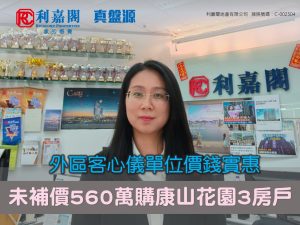 利嘉閣地產康怡花園分行聯席董事陳家豪(Ryan)稱,該行客戶經理邱楚戀(Yuki)新近促成鰂魚涌康山花園6座高層C室的二手成交個案,單位實用面積約592方呎,採3房間隔,外望開揚城市景觀。