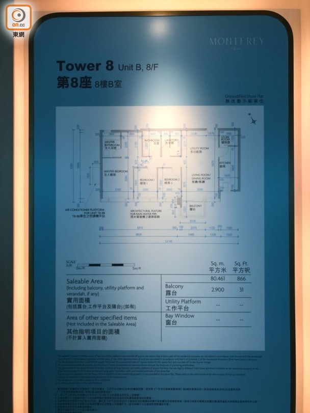 【多相】MONTEREY 三房戶連裝修 實呎866 Published 2017-12-08 · Updated 2019-04-15 MONTEREY86601p.jpegMONTEREY86602p.jpegMONTEREY86603p.jpegMONTEREY86604p.jpegMONTEREY86605p.jpegMONTEREY86606p.jpegMONTEREY86607p.jpegMONTEREY86608p.jpegMONTEREY86609p.jpeg 會德豐地產旗下將軍澳MONTEREY開放全新示範單位予傳媒參觀,包括一個連裝修及一個交樓標準示範單位。 其中連裝修示範單位,參照第8座8樓B室搭建,實用面積866方呎,客廳連接面積31方呎露台,採三房連套房間隔,另有多功能房及儲物室。