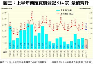 截至6月30日止的上半年,商廈物業買賣登記錄得914宗,較去年下半年的830宗回升10%;金額方面,上半年共錄得194.81億元,較去年下半年的166.07億元增加17%,是工商舖三範疇中唯一量值齊升者;惟若按年同期比較,則雙雙同告回落26%。