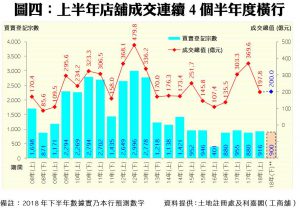 利嘉閣(工商舖)地產-商舖、商業及投資部高級營業董事鄭得明表示,今年上半年,受惠零售市道逐漸向好,期內店舖買賣亦按月穩中微升,表現十分平穩,平均每月約有153宗登記,惟下半年在貿易戰陰霾下,市況存在隱憂。截至6月30日止的上半年,店舖物業買賣錄得916宗,較去年下半年的880宗微升4%;至於成交金額方面,由於去年下半年有領展出售多個商場而錄得大額登記拉高基數下,導致今年上半年店舖登記金額出現顯著萎縮,較去年下半年的369.58億元急挫46%,至只有197.81億元。
