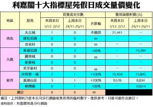 《利嘉閣十大指標屋苑假日二手實況》 十大屋苑周末錄6宗買賣 長達半年單位數 利好消息湧現 樓市轉旺指日可待