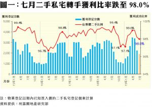 社運影響浮現 私宅轉手獲利比率連跌兩月 報98%創六個月新低 平均每宗仍賺89%
