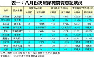 市場觀望氣氛濃 夾屋交投平穩 八月份夾屋買賣登記11宗 按月增1宗