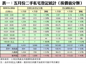 五月二手私宅登記4,491宗 一年來最旺 一手爭客 政情疫情緊張 本月料需回氣