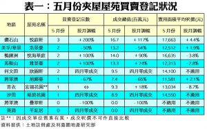一手新盤搶焦點 夾屋交投微跌 五月份夾屋買賣登記14宗 按月少2宗