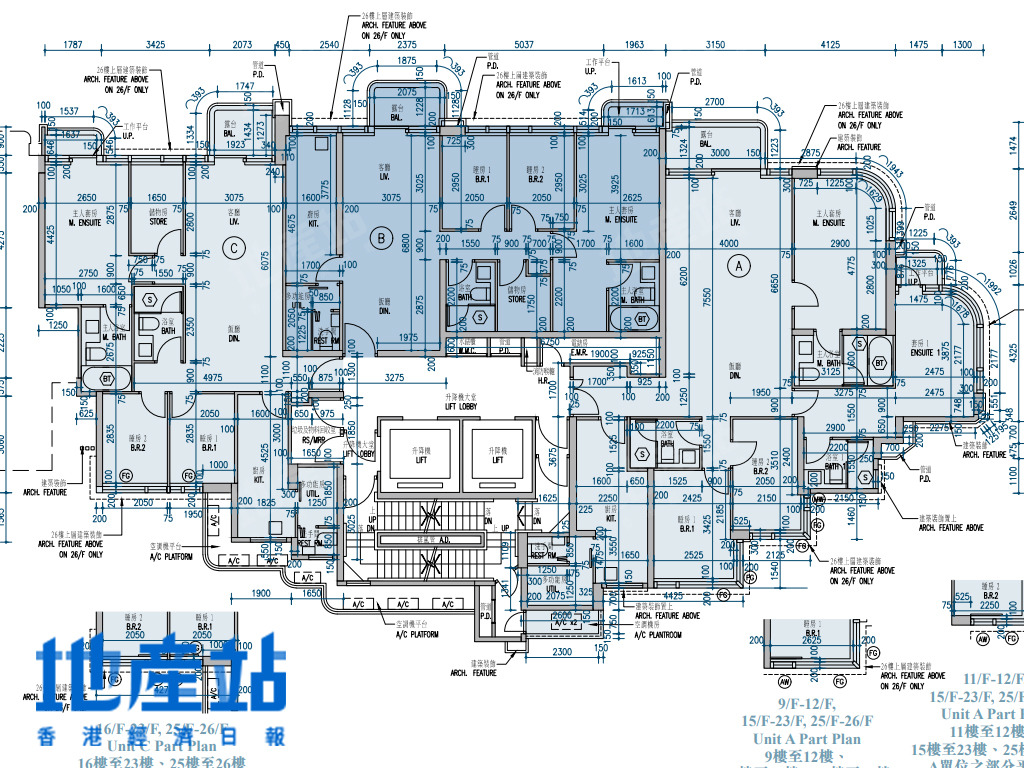 | C室 | 966 | 3房(連套房)加儲物及工作間連廁 | 東南偏南方+西北偏北方 |