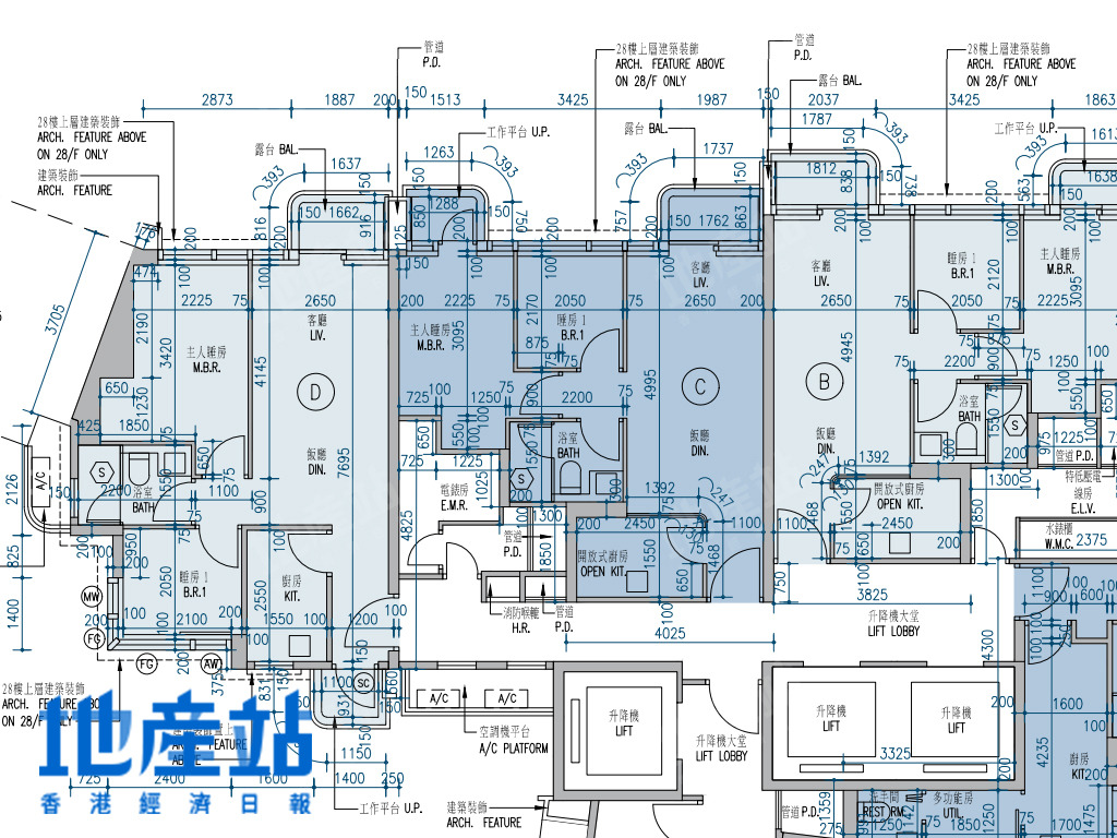 至於C室入屋為玄關,左邊為廚房,廳區長形,兩間細睡房向後面望西北偏北方,至於主人套房及儲物室與廳區同向,而儲物室為非主力牆,可打通擴大空間。
