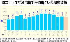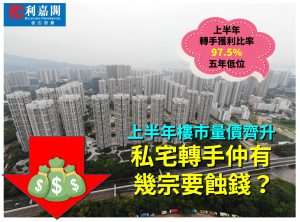 上半年私宅轉手獲利比率97.5% 創5年低 每宗轉手平均賺幅僅73.4% 低位徘徊