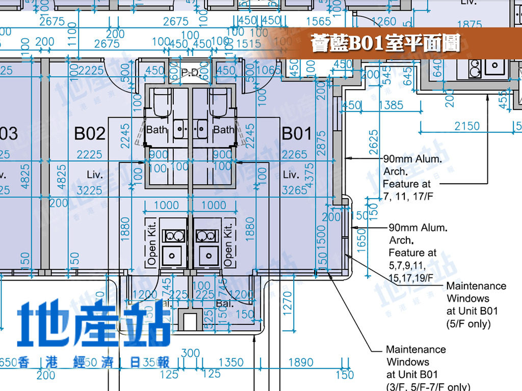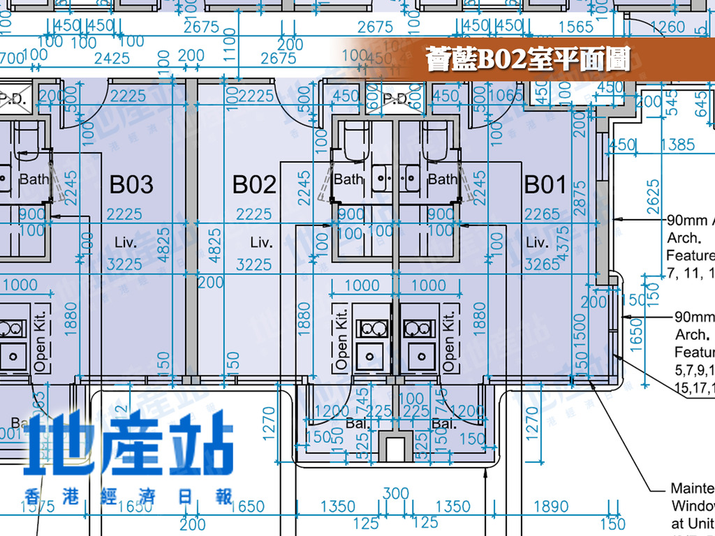 薈藍開放式單位景觀方面,只有分向北單位及向南單位,向北單位屬於A02至A16室,視乎樓層,可望到海景及荃灣景觀;至於向南開放式單位只有6伙,屬於B01至B07室單位,當中B01及B07室單位,設有L形賞景曲尺窗,而B07室單位露台亦以梯形設計。