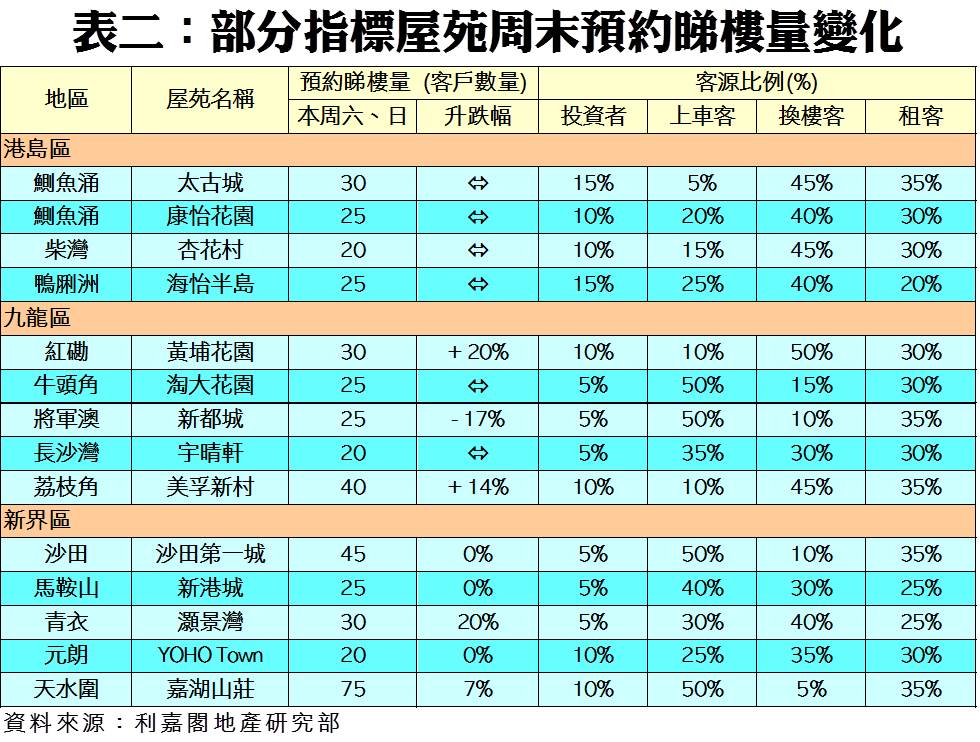 二手業主心態軟化 買家乘勝追擊 50指標屋苑周末預約睇樓量微增1.7%