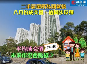 利嘉閣地產研究部主管陳海潮表示,發展商連月來推出多個一手項目,不斷吸納市場購買力,部分業主亦終於面對現實,選擇減價應戰,成功打動上車客回流居屋市場。根據土地註冊處最新數據顯示,八月份全港錄得370宗居屋二手買賣登記(包括第二市場及自由市場),較七月的340宗按月增加9%,終止兩連跌;至於期內成交總值亦錄約18.41億元,較前月的17.18億元,按月同步回升7%。