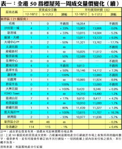 50指標屋苑上周買賣114宗 連續五周逾百宗