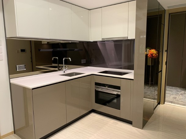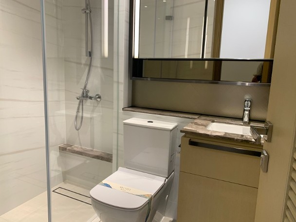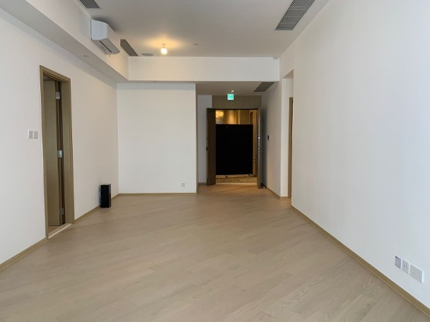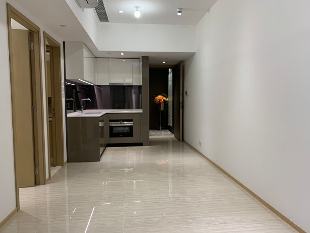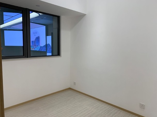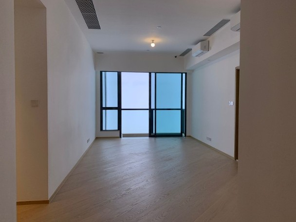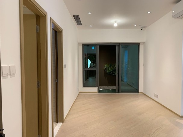 至於另一個兩房無改動示範單位,則以1座15樓F室為藍本搭建,實用面積586方呎。客飯廳外連22方呎露台,梗廚及浴室位於大門左側,主人睡房連接16方呎工作平台,並預留位置放置衣櫃。