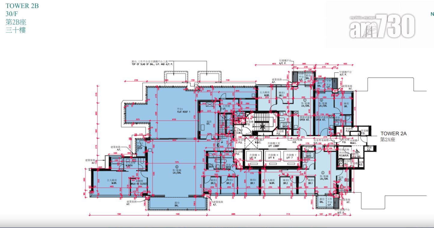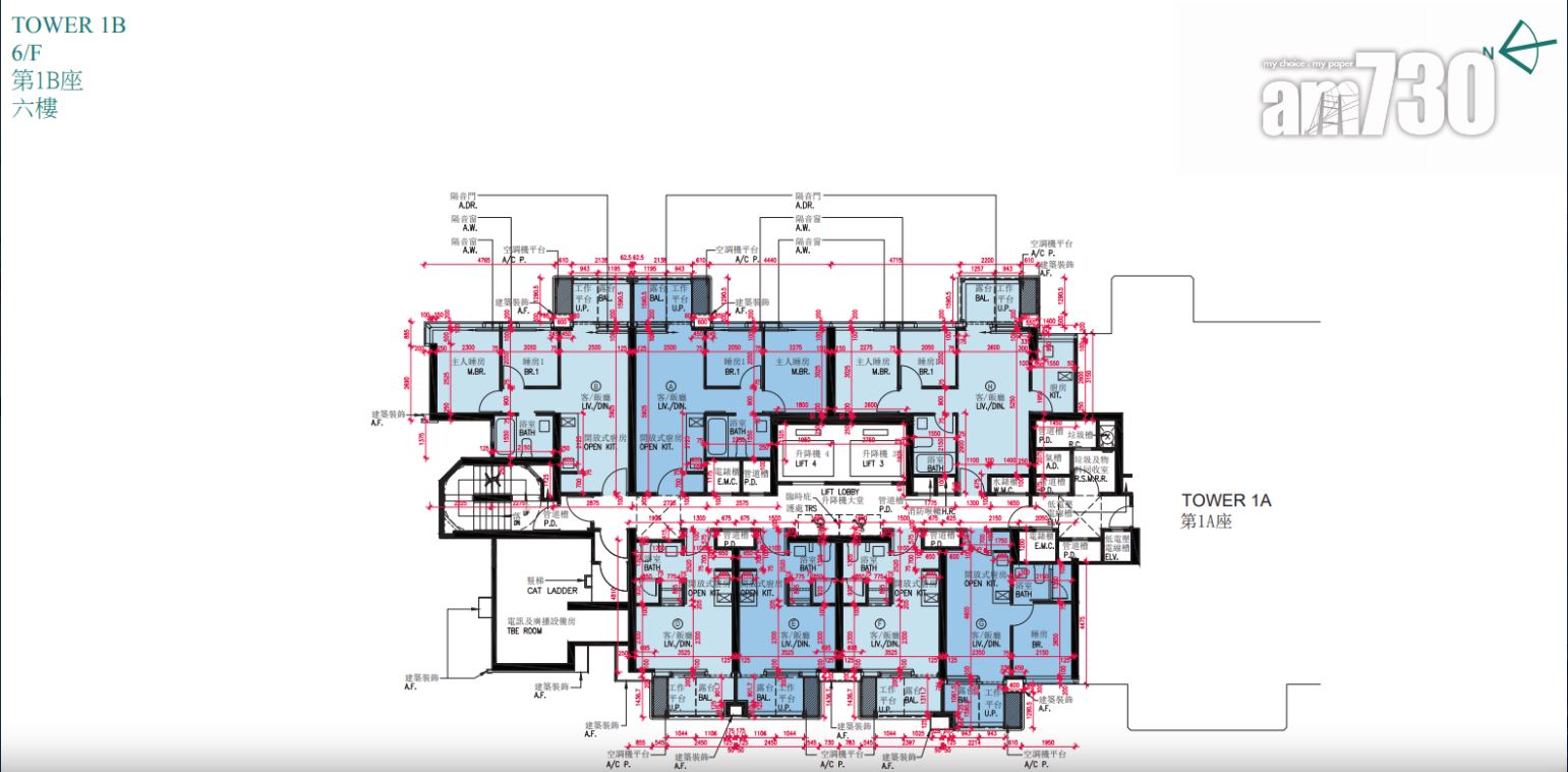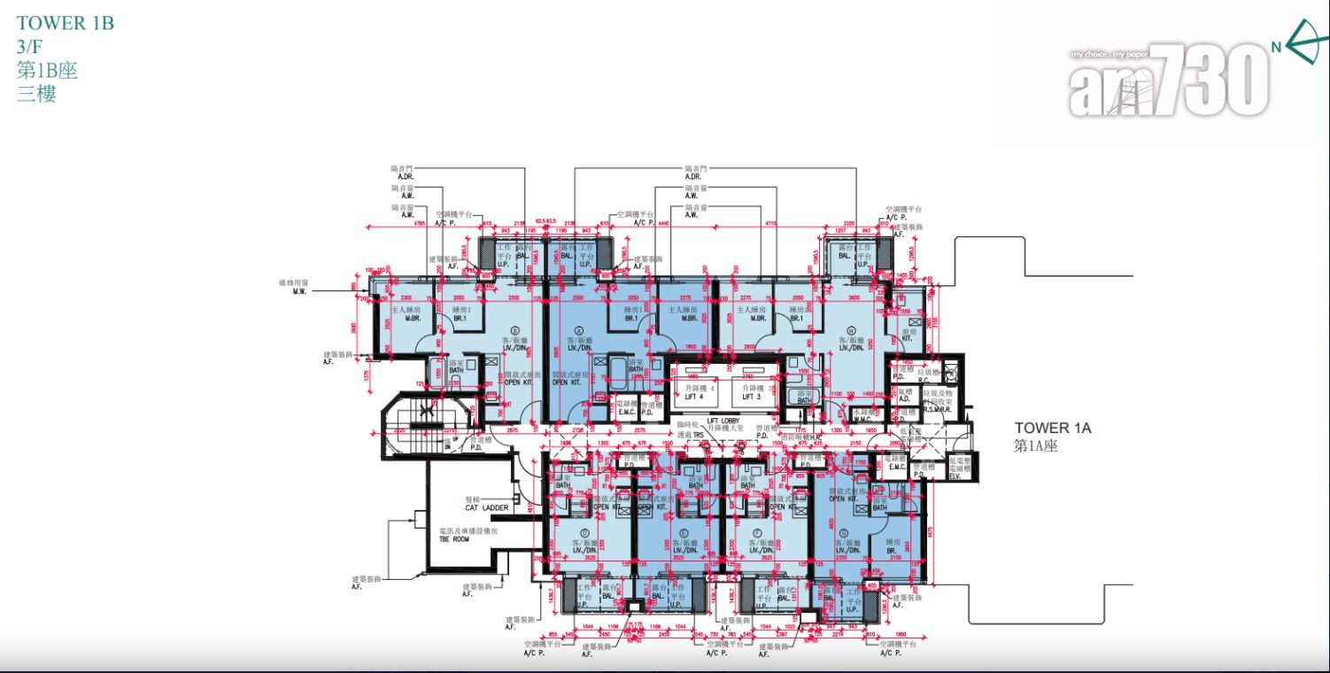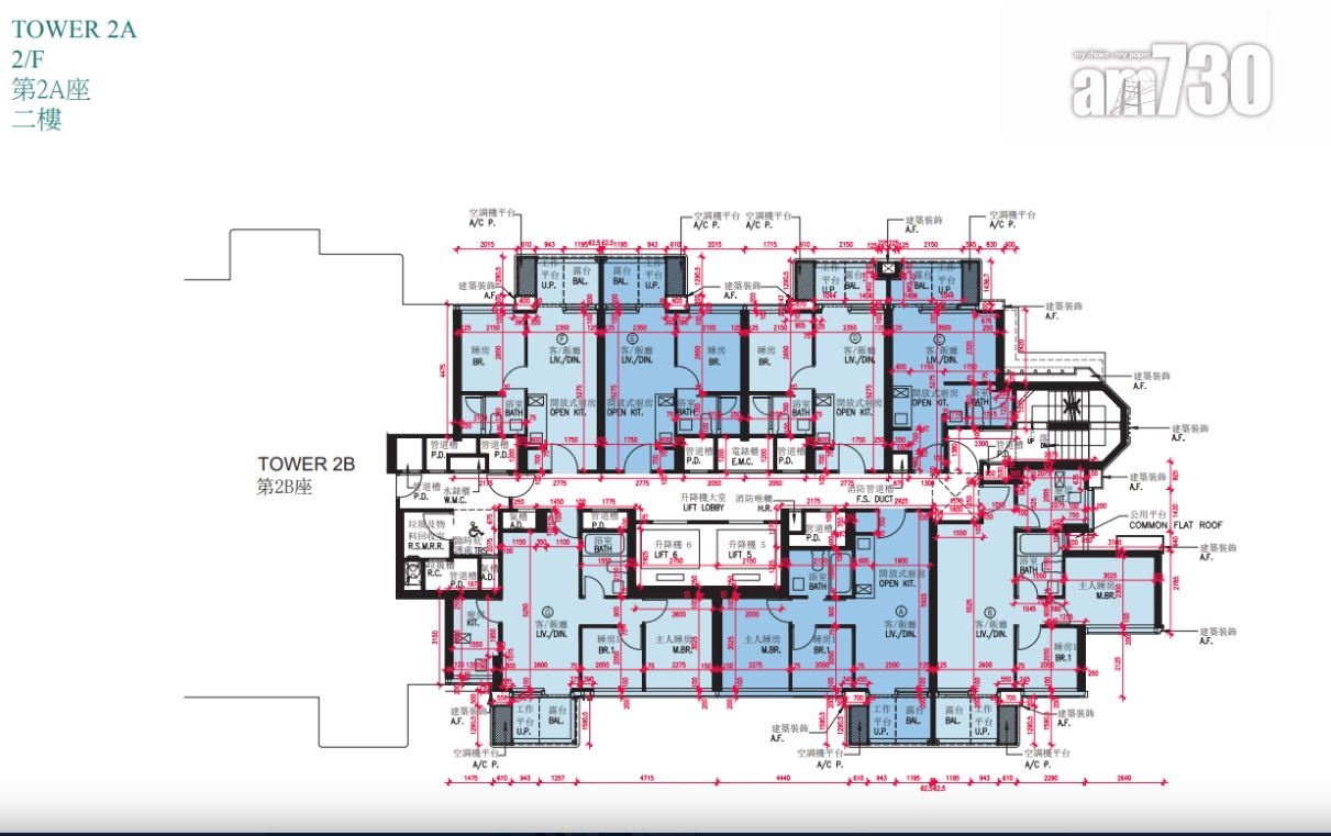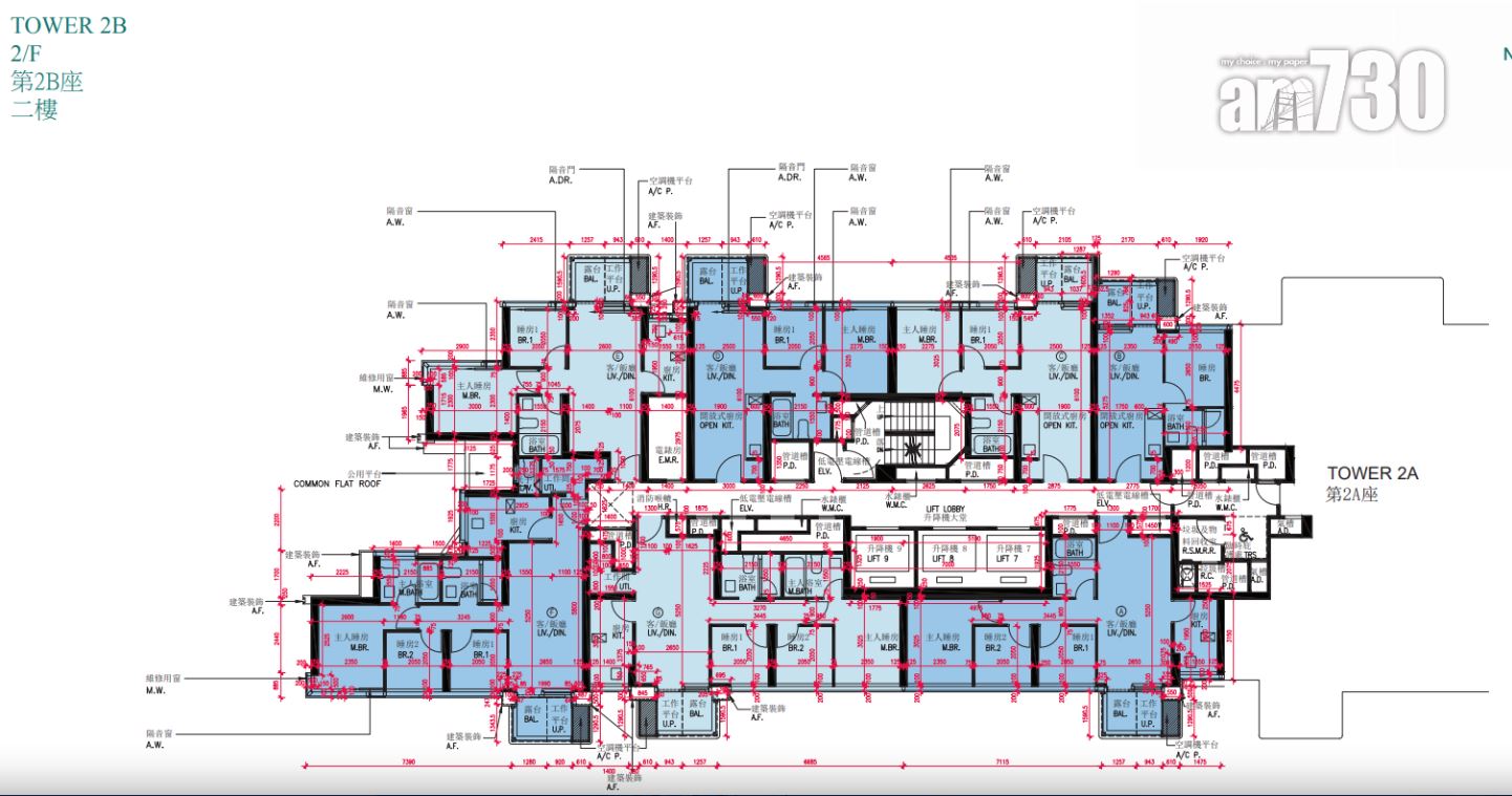 戶型分布方面,項目標準單位涉及701伙,實用面積由244至705方呎。項目主打兩房單位,提供292伙,佔近42%,實用面積由437方呎至509方呎。開放式及一房單位合佔約48%,各提供97伙和239伙,開放式實用面積由244至250方呎;一房實用面積由300至311方呎。另三房單位佔約10%,涉及73伙,實用面積由593方呎至705方呎,全部分布在第2座,廳房同向,享維多利亞港海景。