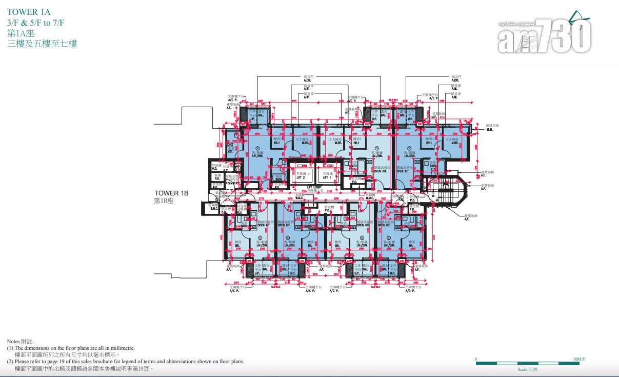 據售樓說明書顯示,項目採雙子大廈設計,由樓高26層和27層的第1座及第2座組成,各細分為相連的A、B兩翼。項目住宅樓層由2樓起,不設4樓、13樓、14樓及24樓。
