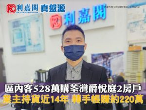 據悉,原業主於2010年以約308萬元購入單位,持貨至今轉售,現帳面獲利約220萬元,期內物業升值逾71%。