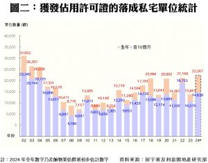 此外,私人住宅落成量方面,根據屋宇署今日最新發表的資料月報顯示,2024年十月份全港共有4個項目,合共3,715個私人住宅單位落成(以屋宇署發出佔用許可證的樓宇數量為準),創三十三個單月新高,並較九月份的1,299伙增近1.86倍;至於今年首十個月累計落成量共14,638伙,較去年同期的10,570伙增加38%。