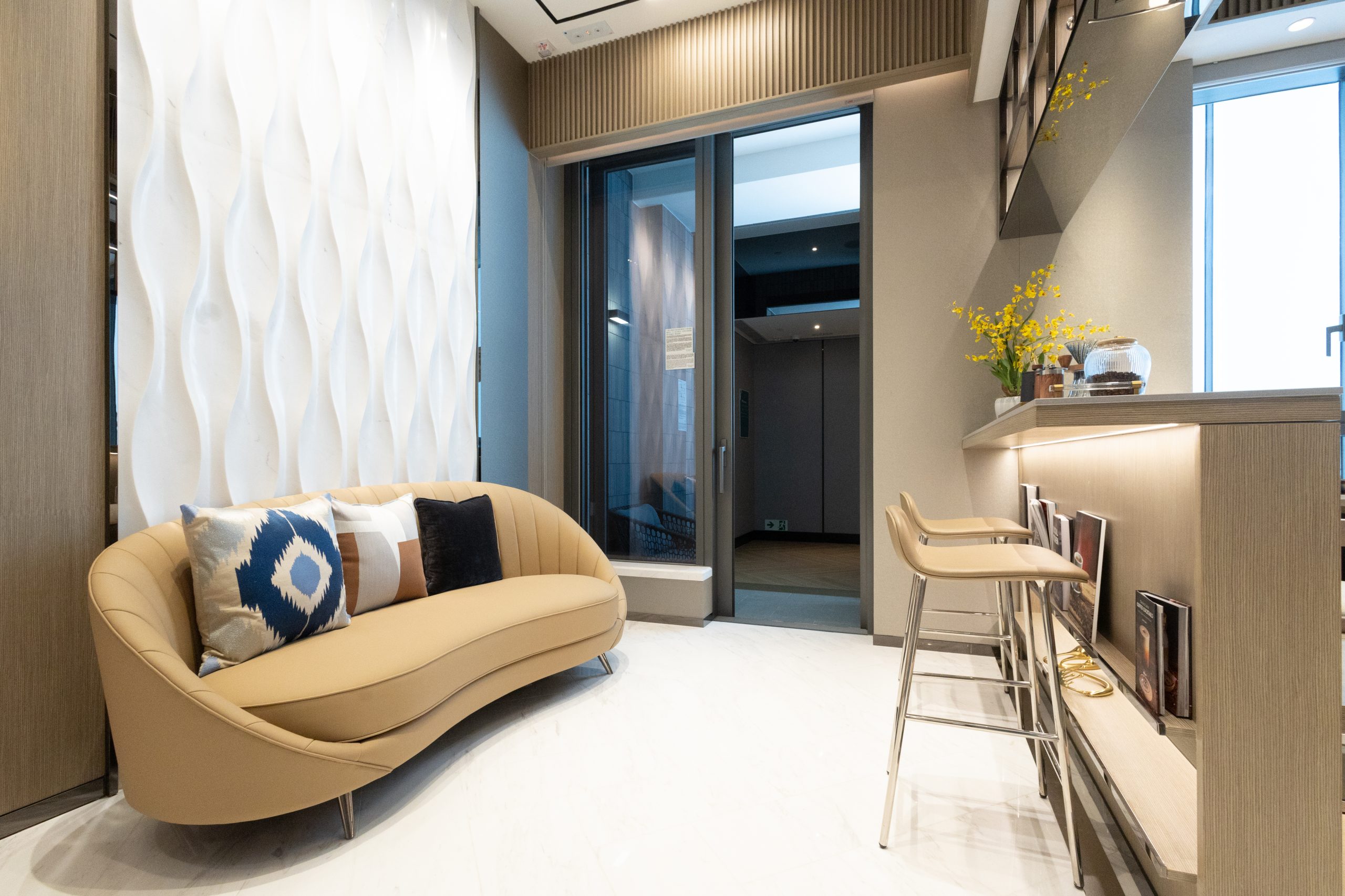發展商同樣備有以第1A座18樓H室為藍本搭建的無改動示範單位,開則方正實用,客飯廳長約5.4米,闊約2.4米,主人睡房長約3米,闊約 2.1米,讓戶主可靈活地擺放不同家具,結合單位的特高樓底,提升室內的空間感,並進一步進行室內設計。