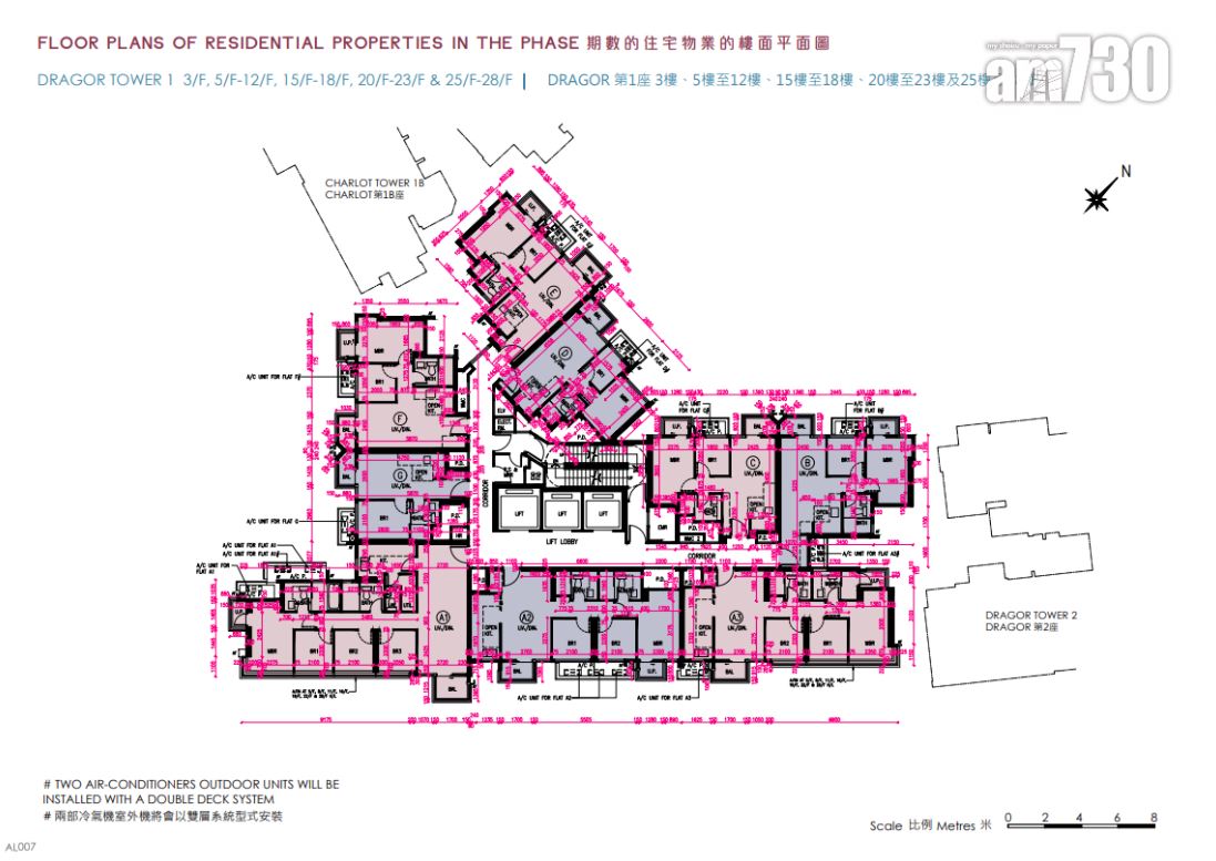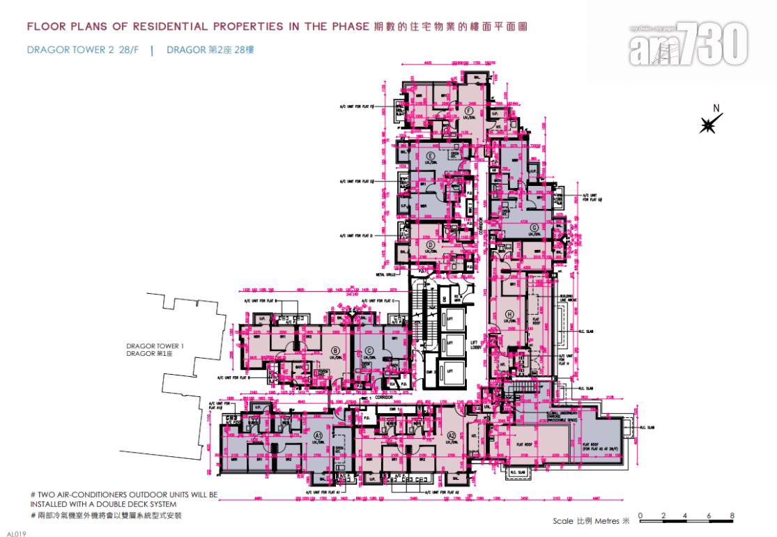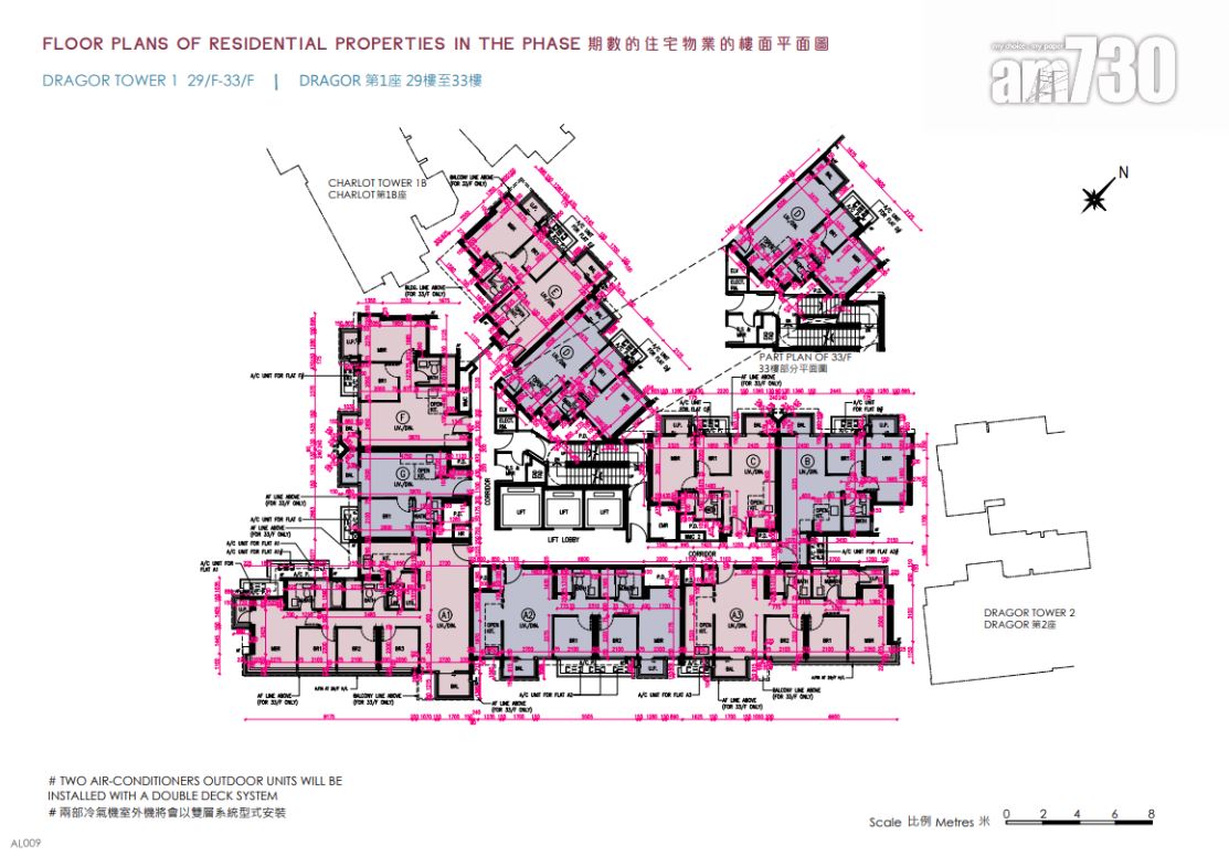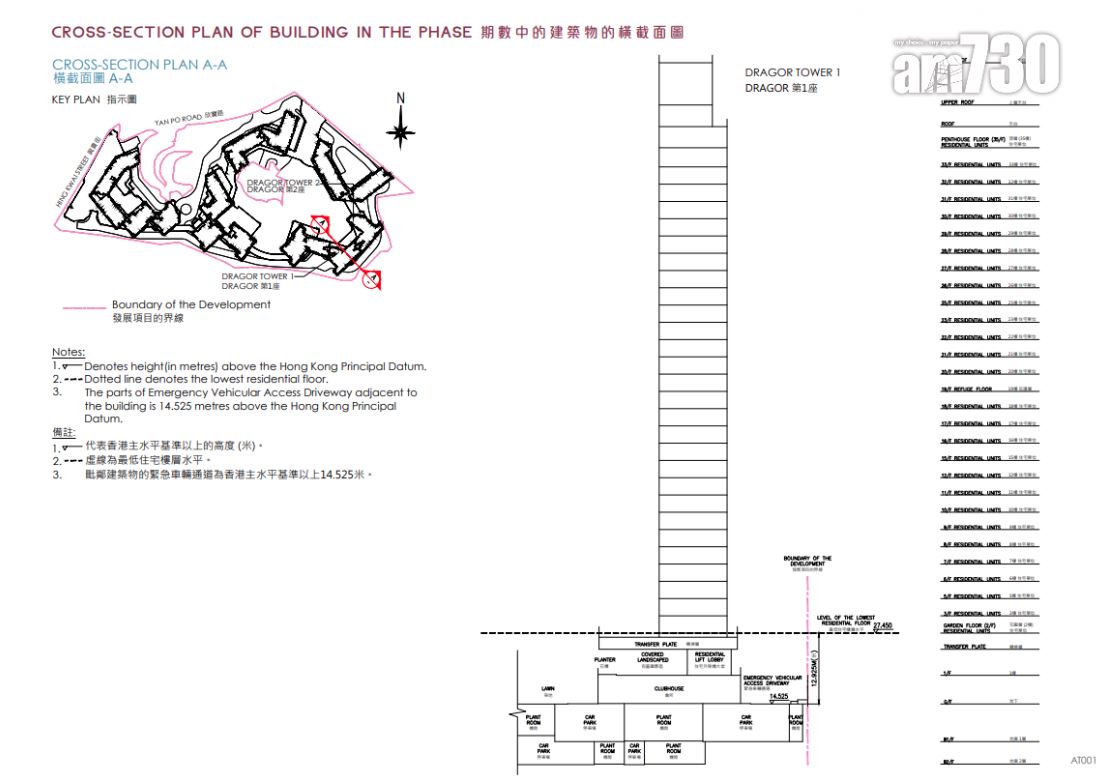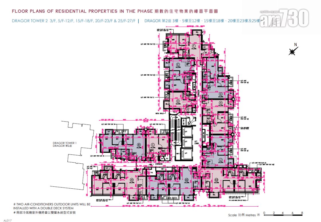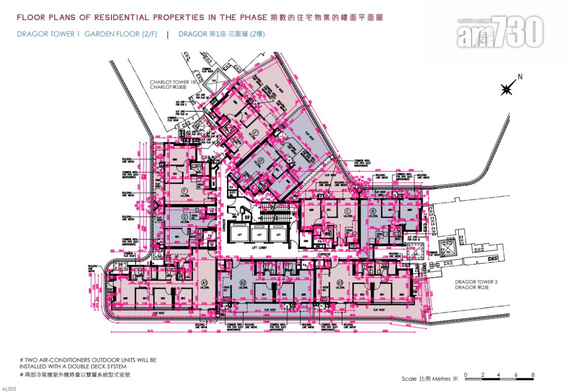 面積最細為Dragor第2座2樓D室,實用面積237方呎,連188方呎平台,屬開放式間隔;面積最大為Dragor第2座35樓A1室,實用面積1,527方呎,連683方呎平台及1,093方呎天台,為四房雙套及工作間連洗手間,當中平台設有私人游泳池。