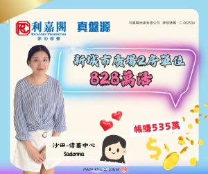 李氏表示,新買家為區內客,經利嘉閣真盤源平台代理介紹上址放盤,立即相約睇樓。客人心儀屋苑位置方便,基座為大型購物商場,鄰近港鐵沙田站,加上單位間隔合用,成功以828萬元易手,折合實用面積呎價約14,325元。