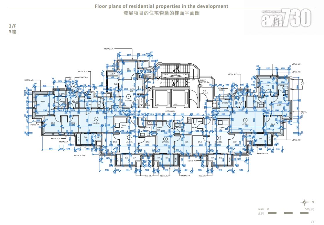 全盤面積最細為3樓C室,實用面積244方呎,屬一房(開放式廚房)間隔;全盤面積最大為26樓A室,實用面積607方呎,連467方呎天台,屬三房一套+儲物室連洗手間間隔。