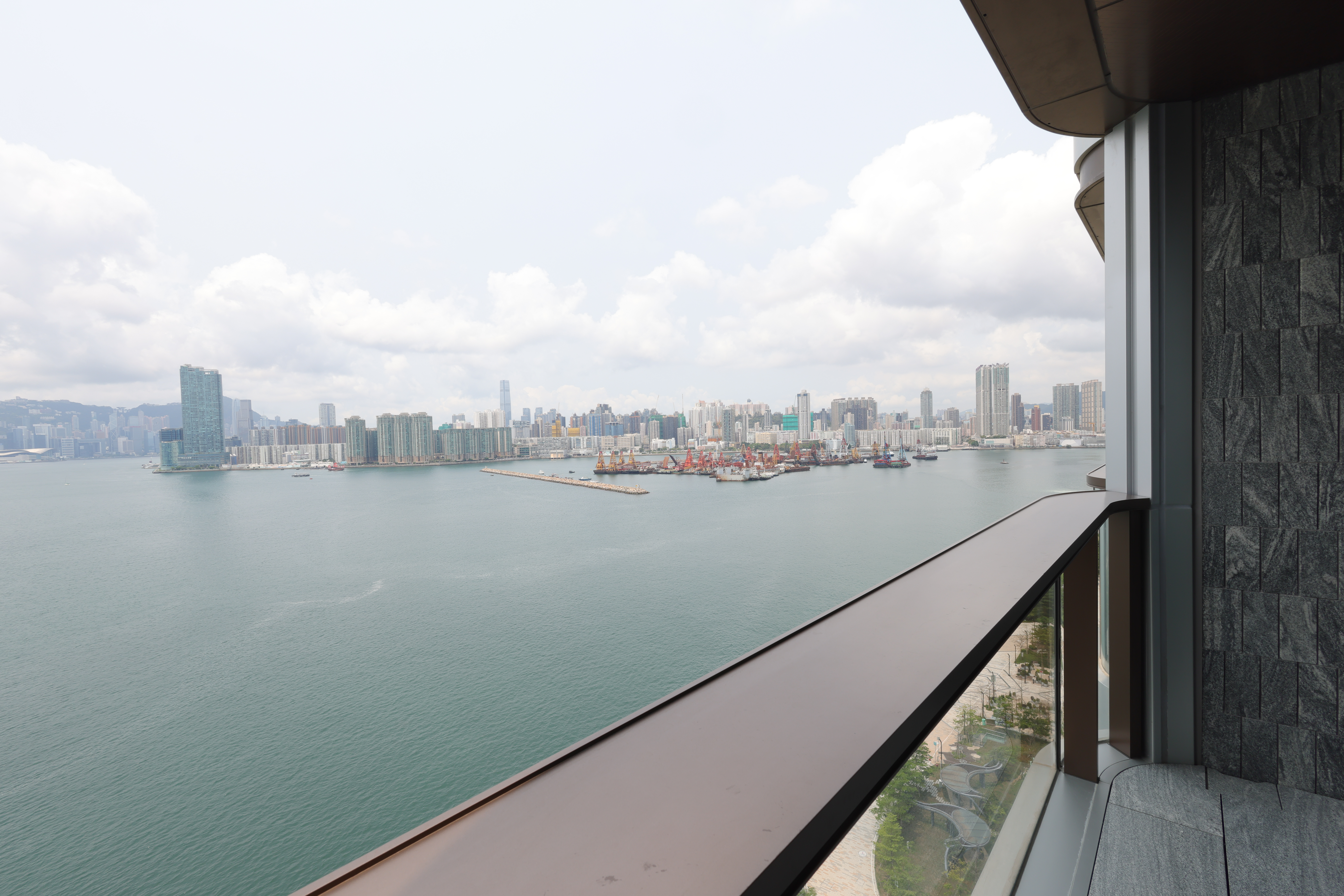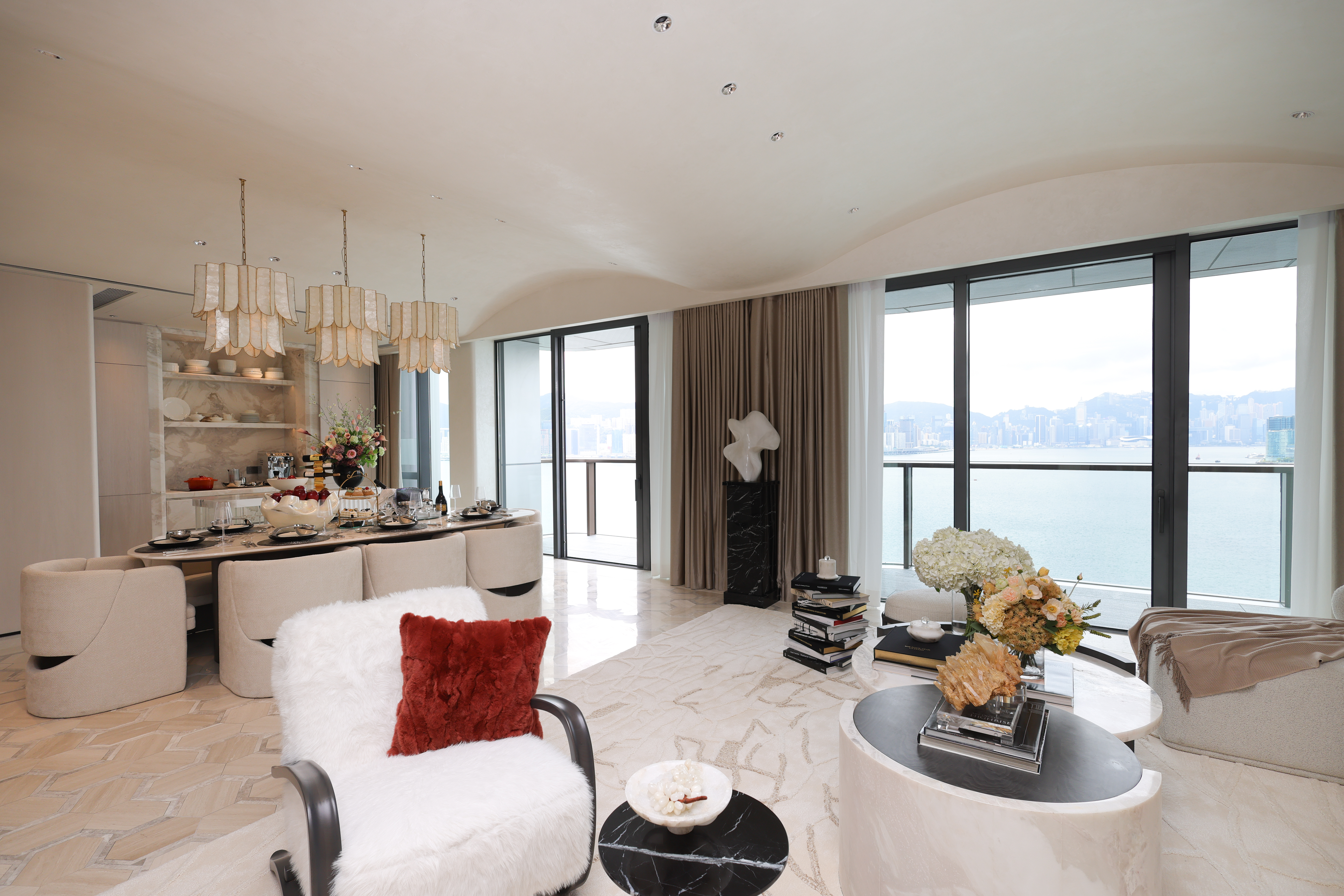 原單位A及單位B的間隔牆被移除,打通兩個單位,令客飯廳更寬闊,全新客飯廳長約6.6米,闊約10米,空間感十足,展現世界級臨海鉅宅氣派,彰顯尊貴不凡的生活格調。全落地玻璃趟門接連雙露台,可180度晝夜鑑賞世界級環迴醉人維港雋景。