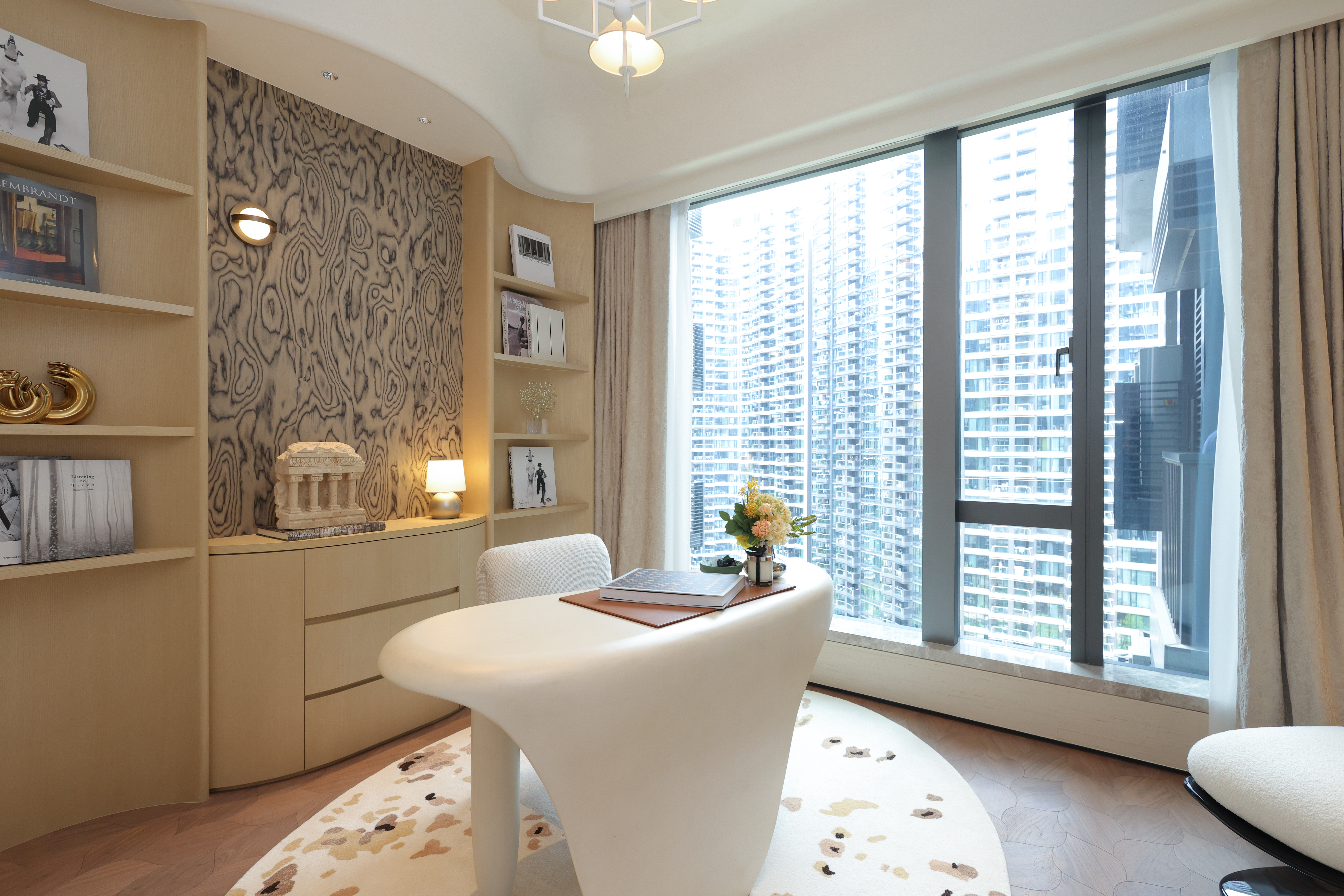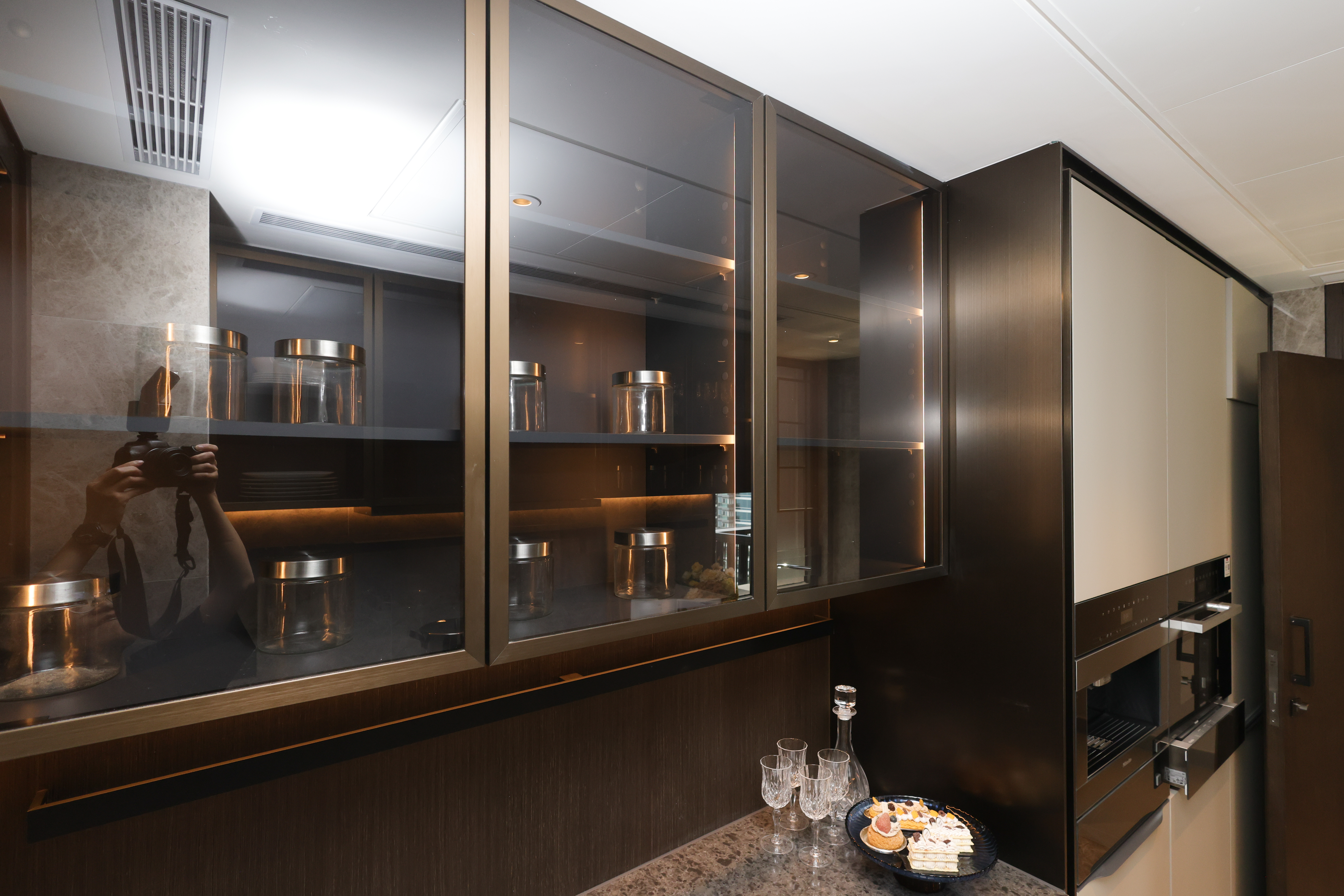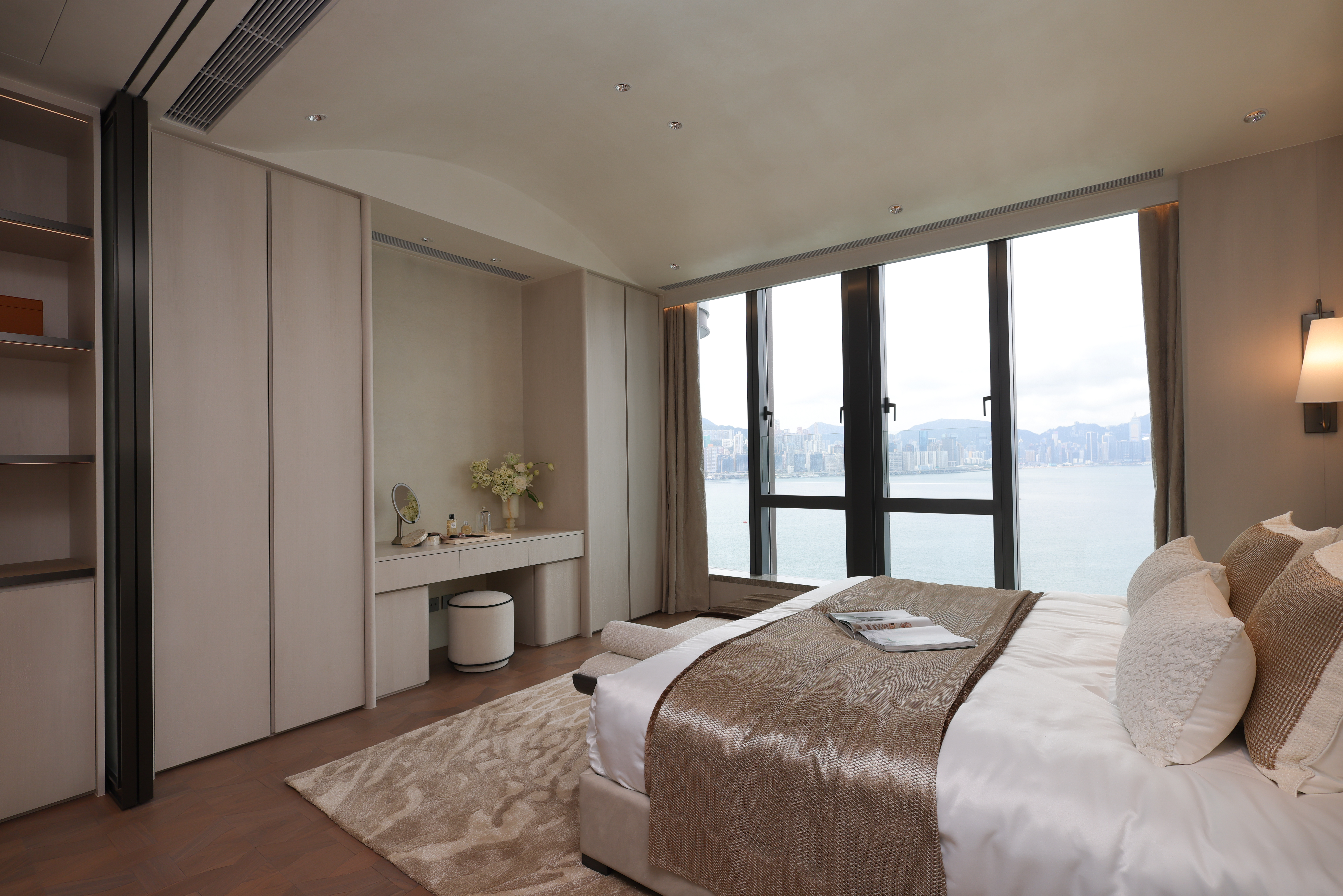 睡房間間隔方正實用,兩間主人睡房均可飽覽廣闊的維港兩岸景色,矜罕非凡。主人睡房裝設英國Claybrook獨立浴缸、美國衛浴品牌Kohler、意大利 Cristal化妝品雪櫃,昇華生活品味。 廚房所有家電均選用德國品牌Miele,包括煮食爐、焗爐、雪櫃、食物保溫櫃、酒櫃、咖啡機、真空處理櫃及洗衣乾衣機等;廚櫃選用德國品牌LEICHT,時尚實用;流動酒吧讓住戶隨時輕談淺酌,展現大宅氣派。廚房連接工作間及洗手間,設計貼心實用。引入全方位智能家居,可控制全家照明系統、電動窗簾和冷氣機;更設有地板隔音系統,減低噪音滋擾,特別照顧需要夜班工作的住戶。另備有LG styler衣物護理機,為住戶增添多一重健康保障。