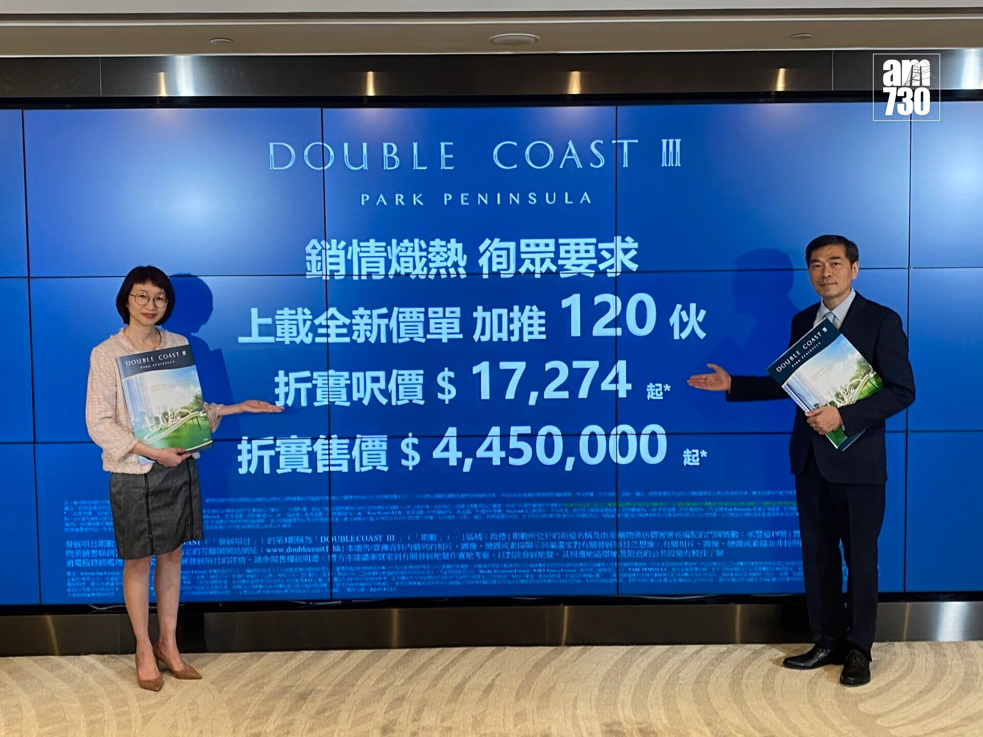 DOUBLE COAST III加推120伙 最平445萬 折實平均呎價19286元|啟德新盤