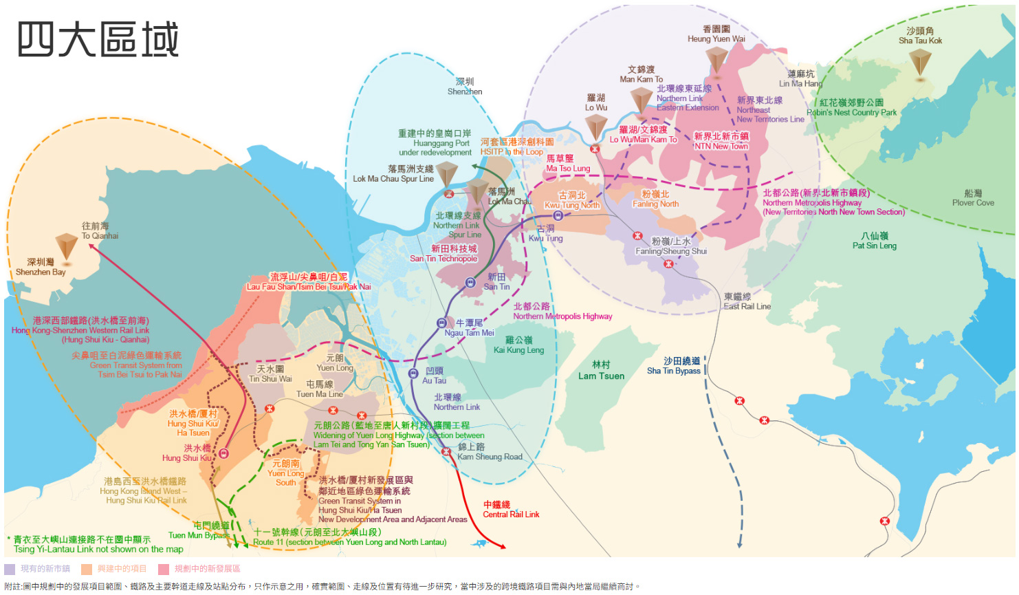 Ø 北部都會區將成為香港未來發展的重要引擎,為城市注入新的經濟動力。通過創造更多創新科技相關的土地供應,該區能支持香港在「南金融、北創科」的新產業布局下,逐步邁向成為國際化的創科中心。